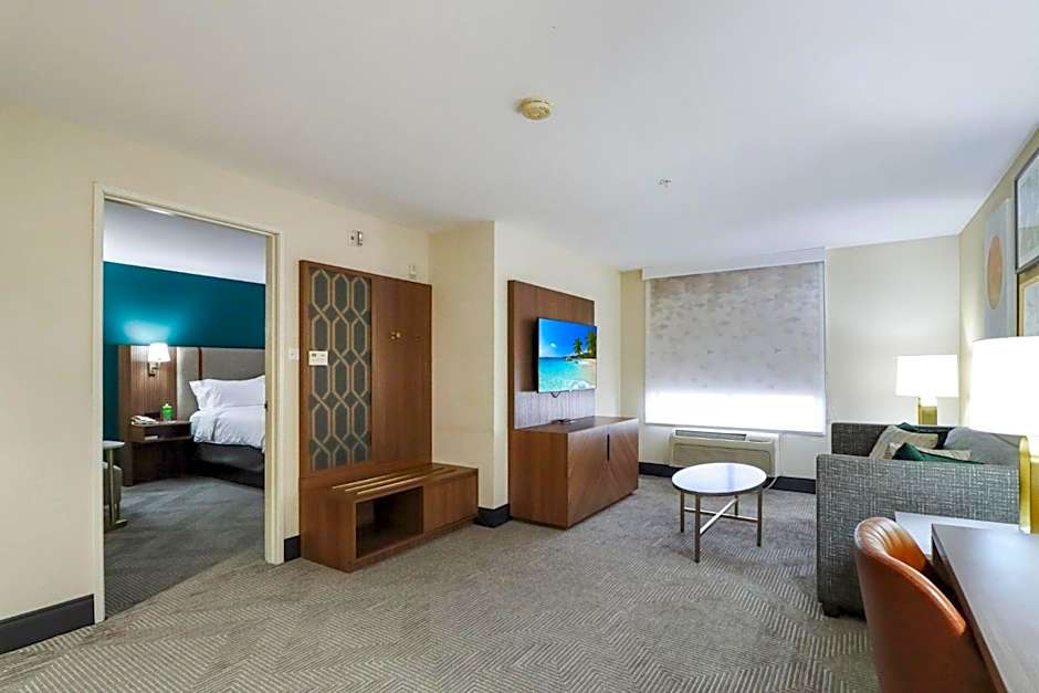 Featuring a sofa bed, this suite also provides a fridge, microwave and wet bar.
